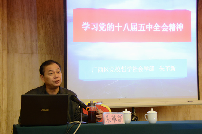 自治区党校哲学部副主任朱革新授课